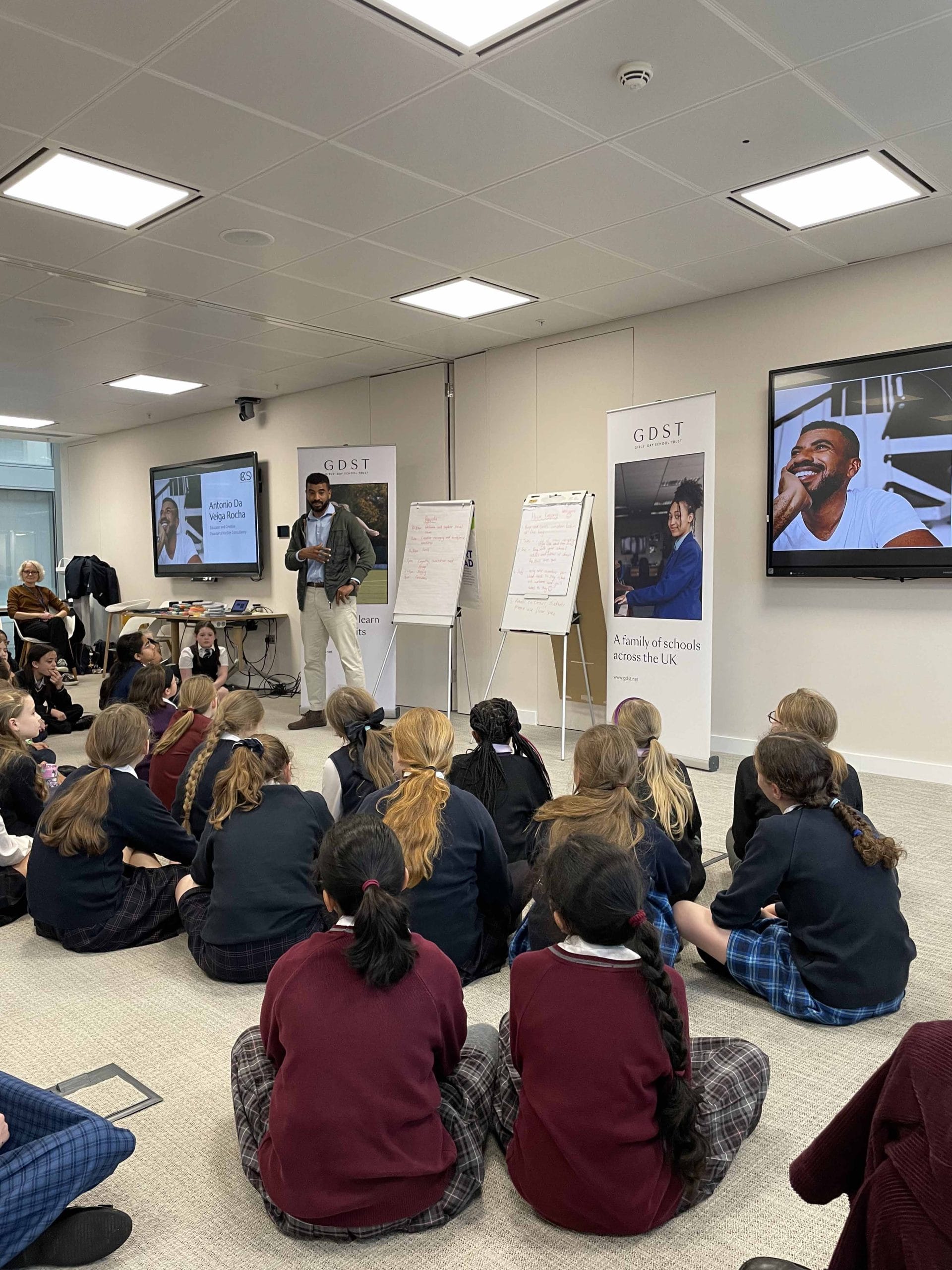 Later, the pupils created a soundscape, which will be shared with schools across the GDST. They also took part in an empathy and connections activity, cutting colourful string to represent parts of themselves and sharing these across the table when they discovered connections with others through attentive listening – a vital characteristic of empathy. The girls then worked collaboratively to build sculptures from their strings, thoughtfully naming their creations.